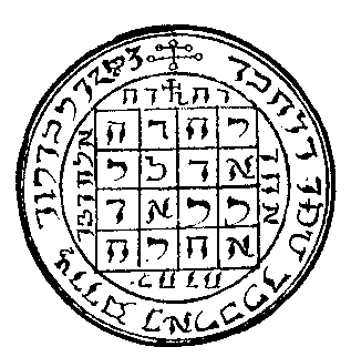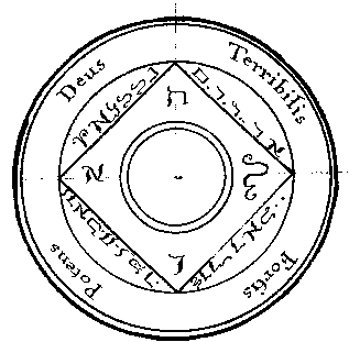 -. Cados, Cados, Cados, Cados. Adonay, Agla, Ehon, Hau / KIS. Tau, Aleph, Bet, Gimel. Zenard, Elohim, Saday, Adonay. Elion, Zenon, El, Araton. |