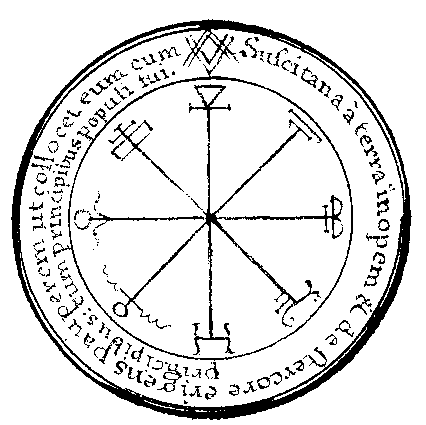 Ce Pentacule se refferes à une Legion d'Esprits de Jupiter sous les Princes hismael et Jophiel et par son moyen ou pourra facilement parvenir aux sciences sans disposition. |