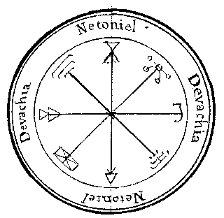 Ce Pentacule est de l'Ange Adnachiel Dominateur de Venus habitant du Sagitaire, a la propriété de contraindre les Esprits du Sagitaire à obéir. |