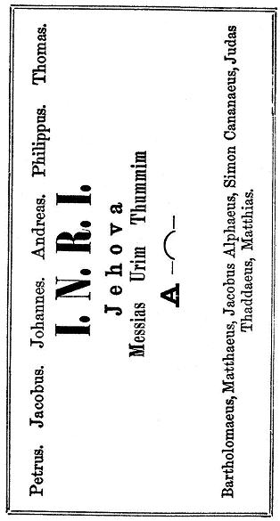 Zebaoth † Theos † Yschyros † Messias † Imas † Weghaymko † Quoheos † Roveym † Christoze † Abay † Xewefaraym † Agla † |