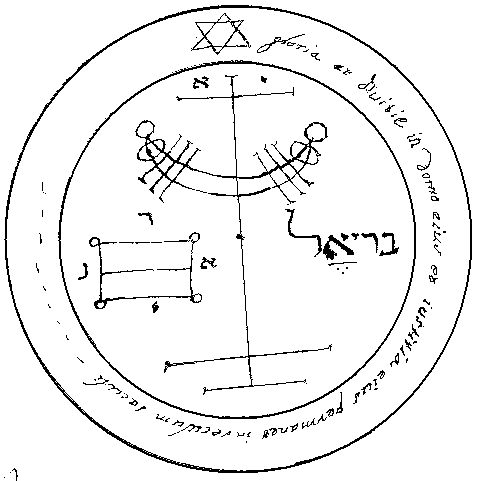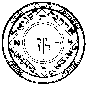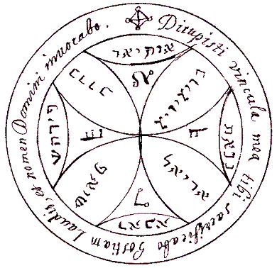 Editor's Note.-- The pentacle is composed of mystical characters of the Moon, surrounded by a versicle from Genesis vii. 11, 12:— 'All the fountains of the great deep were broken up ... and the rain was upon the earth.' -SLM