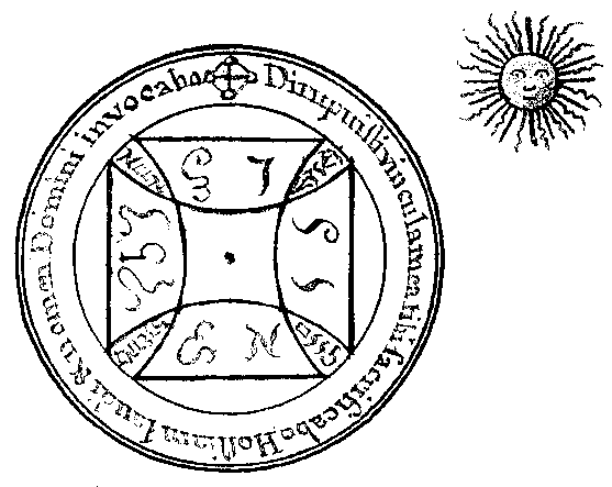 Compare Magical Calendar, second seal of Virgo and Archidoxes, of seal of Virgo. Liebe, Noss. Also found on Lans. 1203, p. 136. |