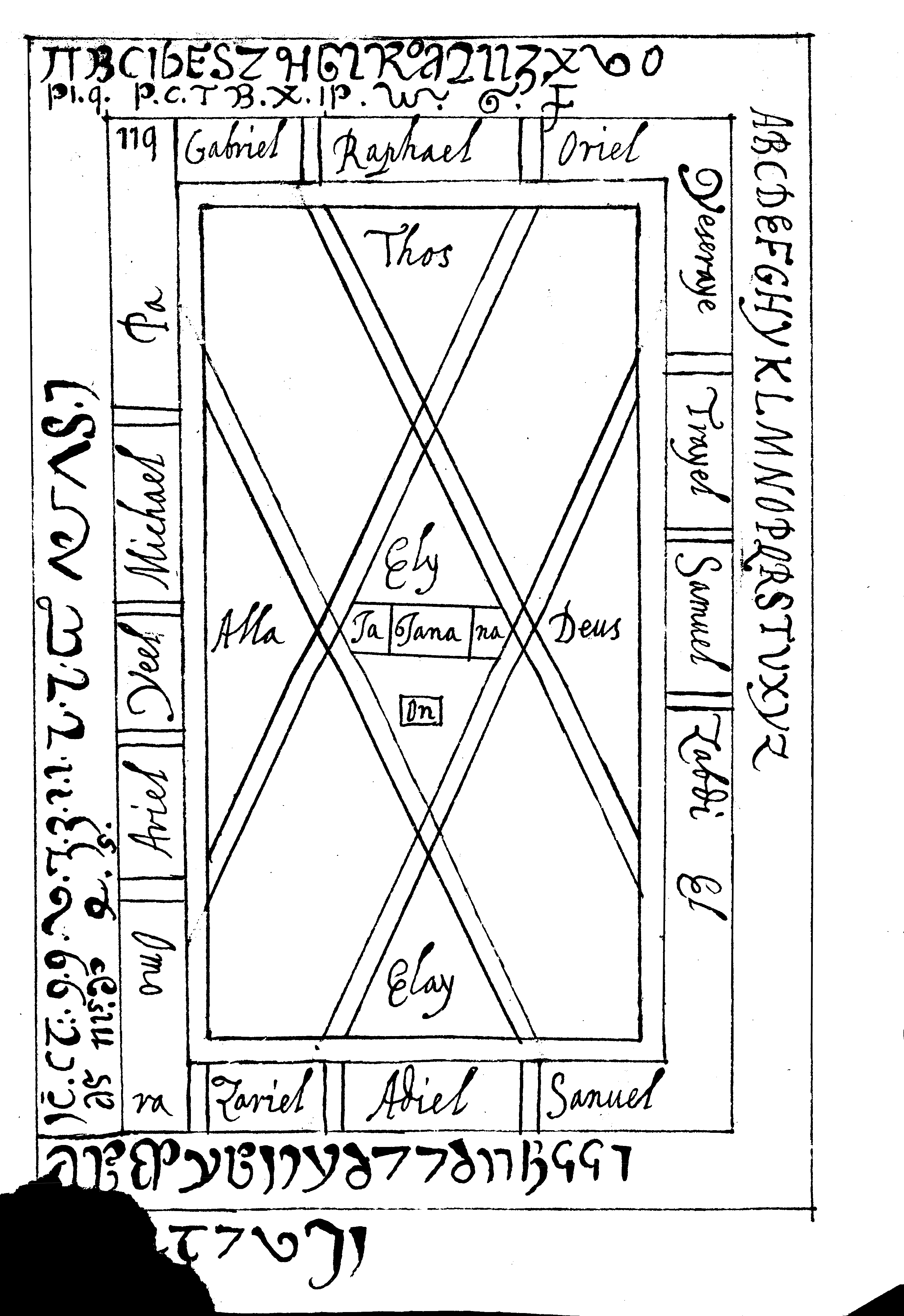 Note the border of the Sememphoras table includes the four alphabets – Latin, Greek, Hebrew, and “Chaldaean or Arabic” - used to extract the names of spirits.